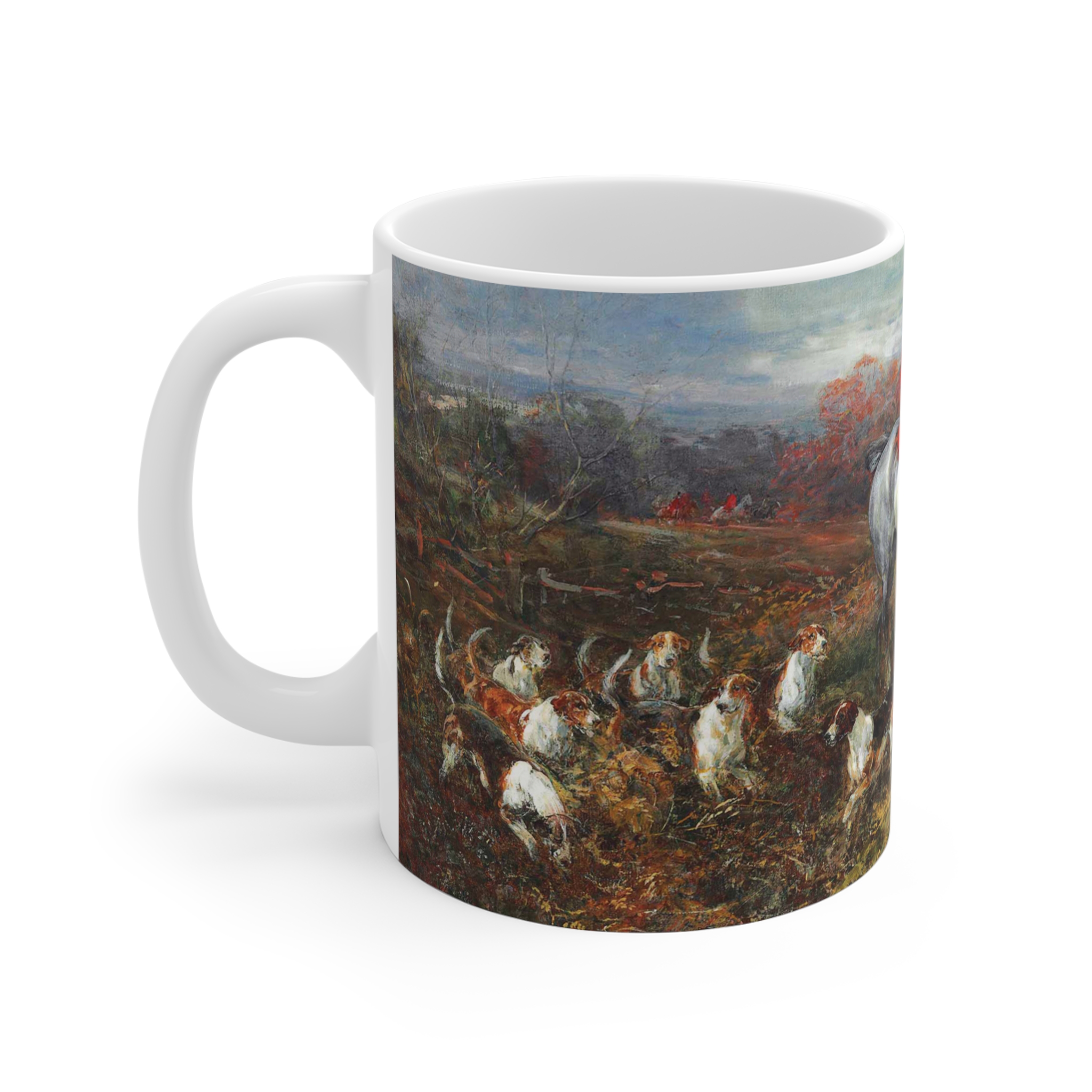 Enjoy a touch of classic British heritage with this elegant white ceramic mug.The artwork beautifully captures the anticipation and energy of a traditional fox hunt, celebrating the timeless culture of the British countryside.