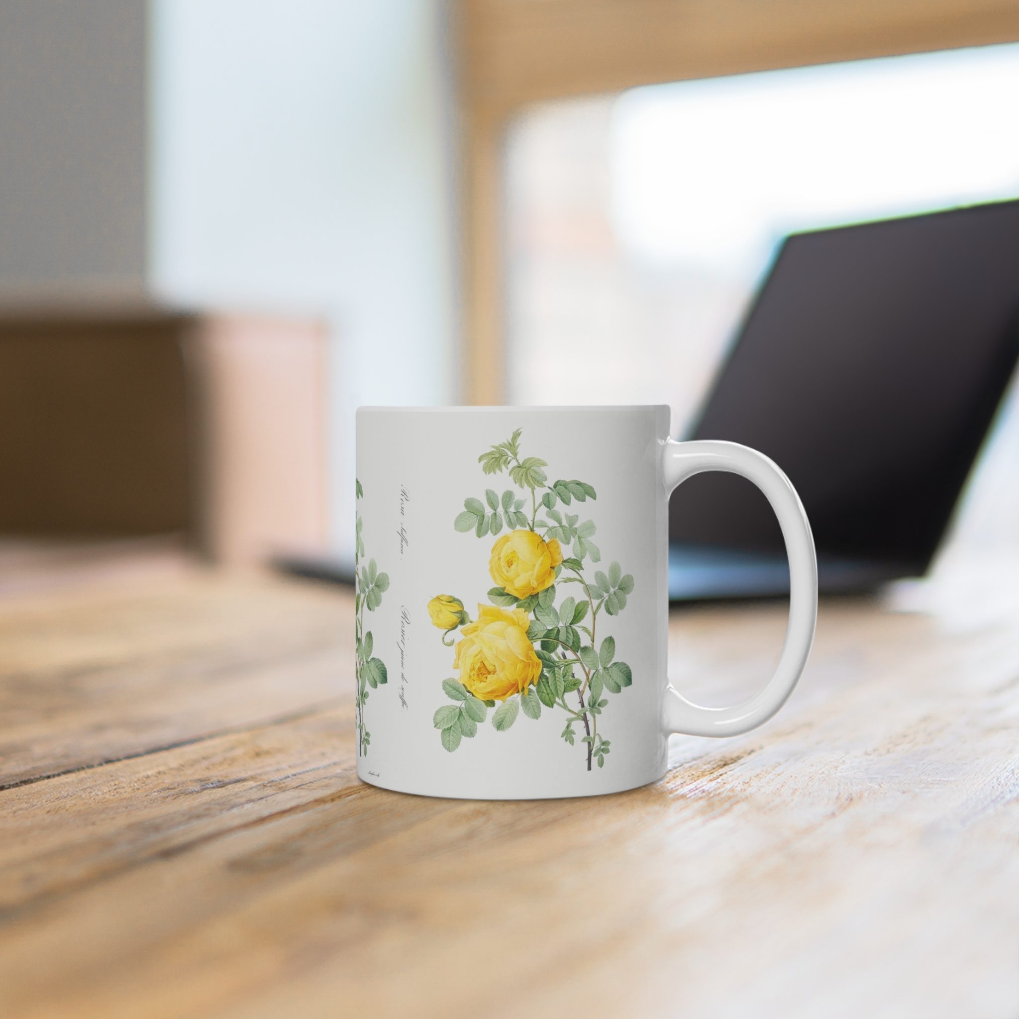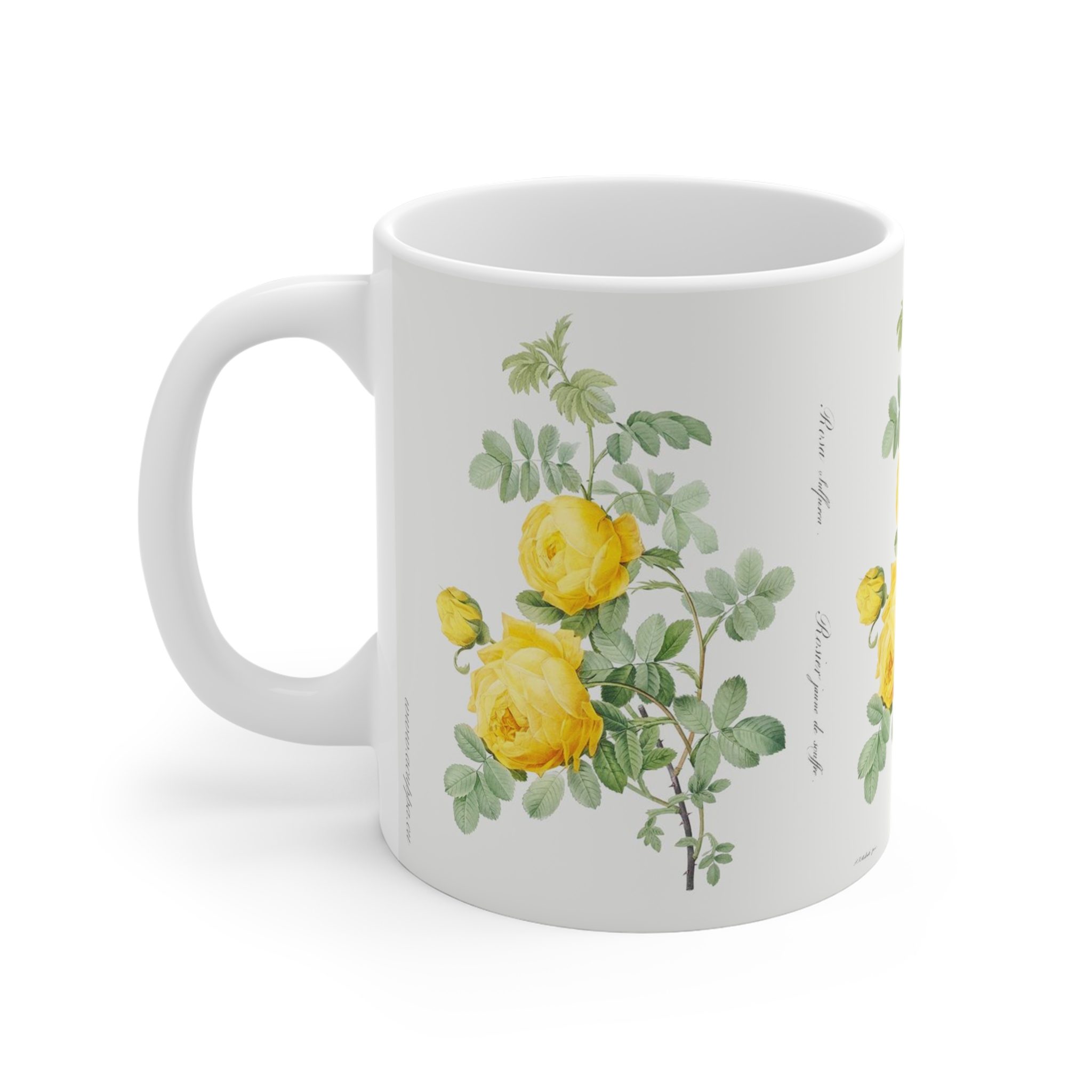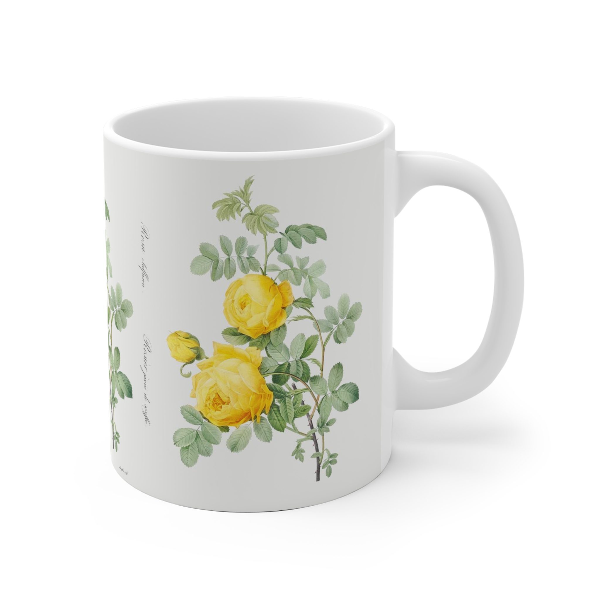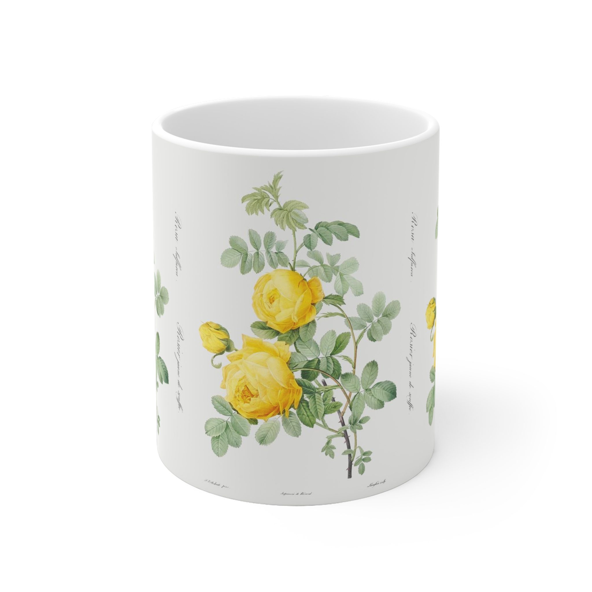 This mug brings the beauty of “Rosa hemisphaerica” to life, offering a visual treat and a sweet fragrance to accompany your sipping experience.