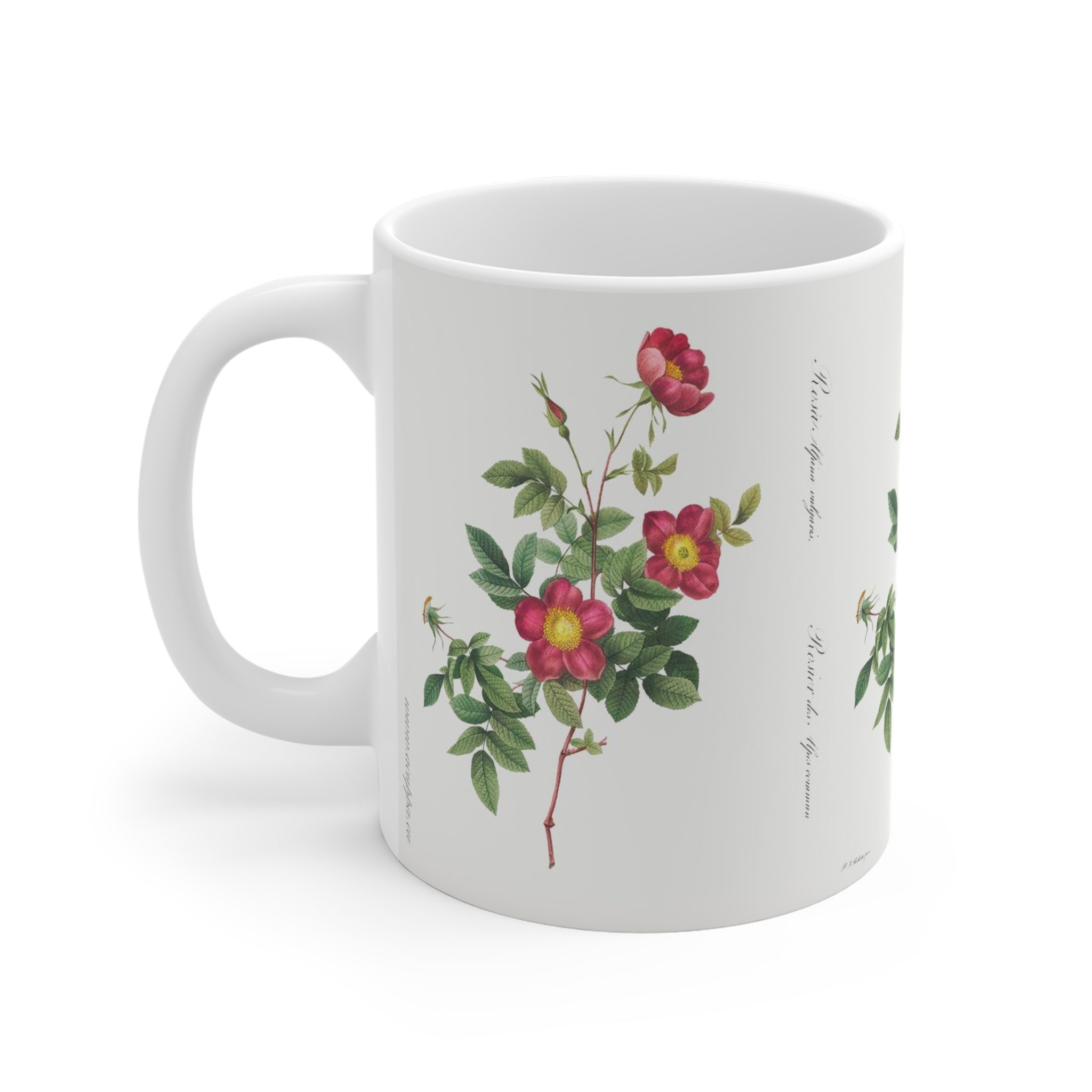 The Rosa Pendulina Tea Time Cup (the alpine rose). Indulge in the simple pleasures of sipping your favorite brew from a mug adorned with the timeless beauty of a pretty wild rose often found in mountainous regions, particularly in alpine meadows and rocky slopes.